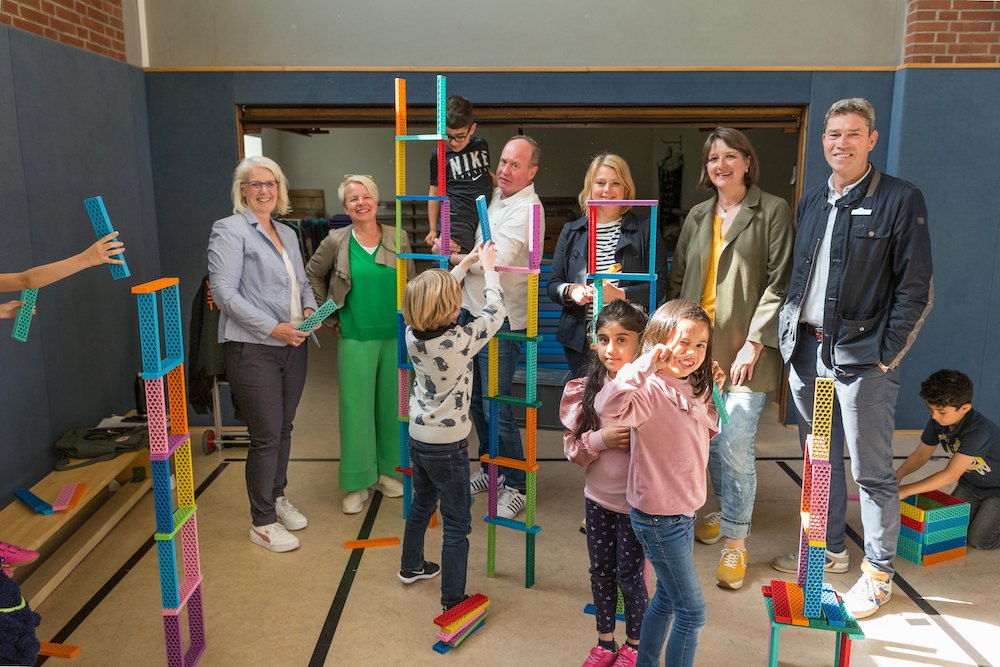 Gütersloh. Gemeinsames Bauen und Konstruieren stand für 15 Kinder der Kindertageseinrichtung Hulahoop und der ersten Klasse der Grundschule Kattenstroth aus Gütersloh auf dem Plan. Der Aktionstag im MINT-Bereich ist Teil der Entdeckerwochen des Kreises Gütersloh. Mit farbenfrohen Bausteinen bauten die Kinder unter Leitung von Reinhard Stükerjürgen vom Workshop-Team Türme und Brücken. Dabei waren Geschicklichkeit, Ausdauer und Konzentration gefragt. Die Statik und Schwerkraft mussten auch beachtet werden. Koordiniert wurde der Aktionstag vom Bildungsbüro des Kreises Gütersloh.