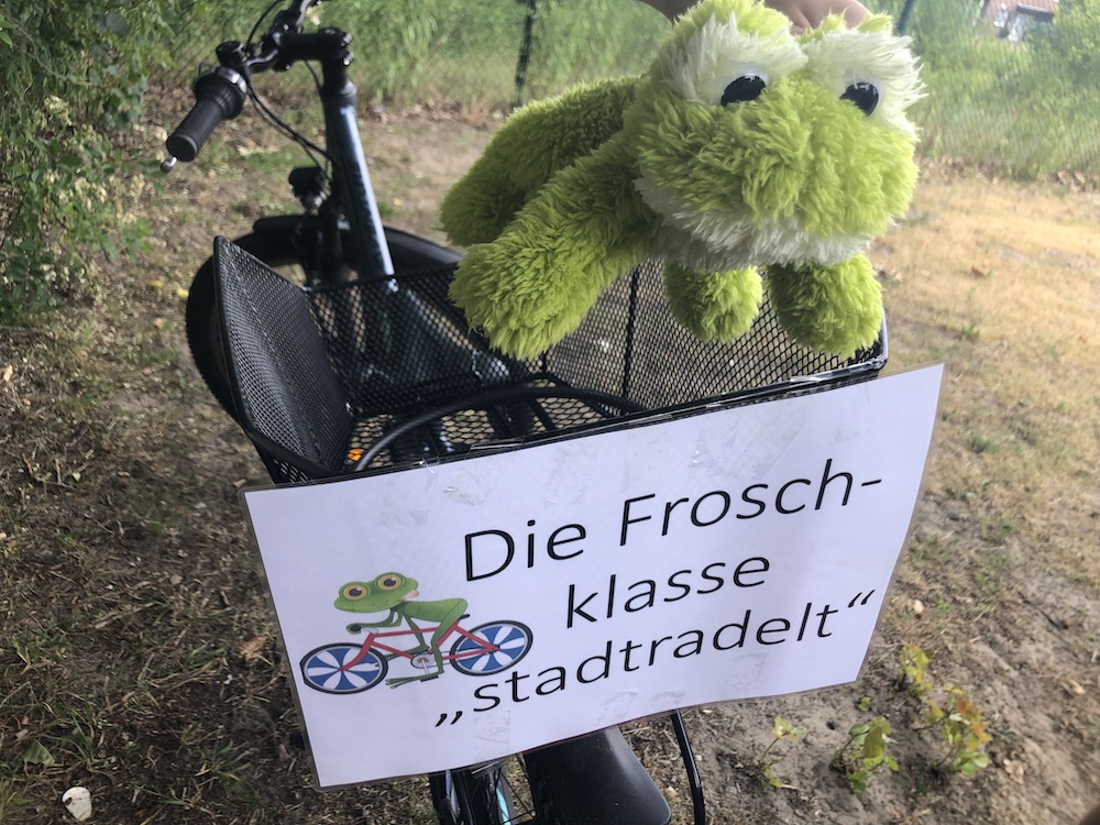 Mit 4.831 km gesammelten Radkilometern hatte im vergangenen Jahr 2023 die Froschklasse (2a) der KvG-Schule die Nase vorn. Mit 32 Radelnden gingen dort am meisten an den Start und sie haben den besten pro-Kopf-Durchschnitt erzielt (151 km). Zudem gab es einen Sonderpreis von 50 Euro, weil sie die einzige war, die einen kreativen Beitrag eingereicht hat. (Fotocredit: KvG-Schule).