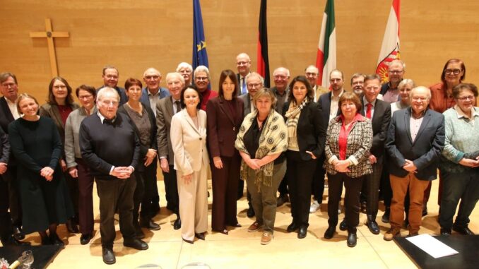 Im Kreishaus kann sich niemand an eine so große Feier zu Ehren ehemaliger Kreistagsmitglieder erinnern: Landrätin Ina Laukötter verabschiedete am Montag, 8. Dezember, im Sitzungssaal 37 Kreistagsmitglieder, die entweder mit der Kreistagswahl 2025 oder bereits in der laufenden Legislatur ausgeschieden sind. „Frauen und Männer, die sich mit Leidenschaft und Überzeugung für unseren Kreis eingesetzt haben“, sagte Laukötter vor den Gästen, die teils in Begleitung zur Feierstunde erschienen waren. Sie habe sie zwar, wenn überhaupt, nur kurz kennen lernen können, meinte Laukötter. Aber umso mehr freue sie sich, sie heute gebührend verabschieden zu können.