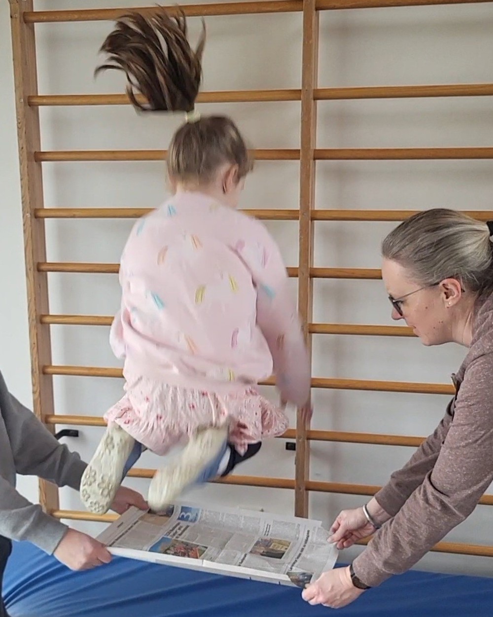 Dabei hat den Kindern das durch die Zeitung springen, Käfer fangen und Laufhase-Sitzhase am meisten Spaß gemacht.