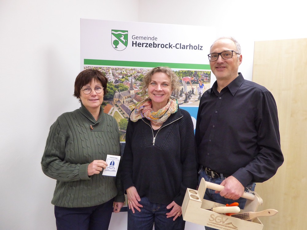 Mit Angelika Kewitsch und Klaus Rummel stehen Anja Valentien (Mitte), bei der Gemeindeverwaltung für Tourismus zuständig, zwei Experten zur Markierung der Wanderwege in und um Herzebrock-Clarholz zur Seite. (Foto: Gemeinde Herzebrock-Clarholz)