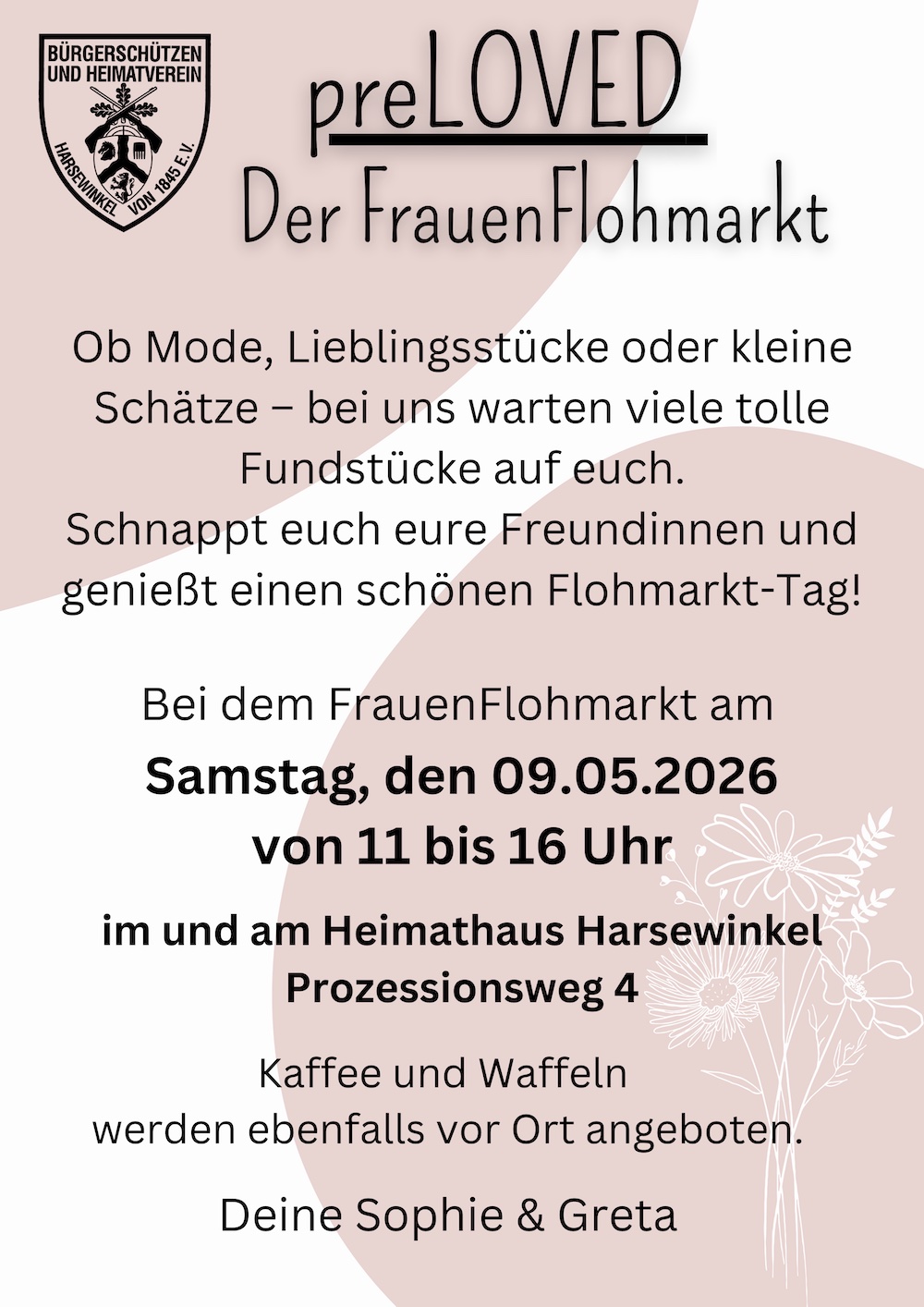 Mode, Accessoires und kleine Schätze stehen im Mittelpunkt eines neuen Veranstaltungsformats: Am Samstag, 9. Mai 2026, findet erstmals der „preLOVED“ Frauenflohmarkt im und rund um das Heimathaus Harsewinkel statt.