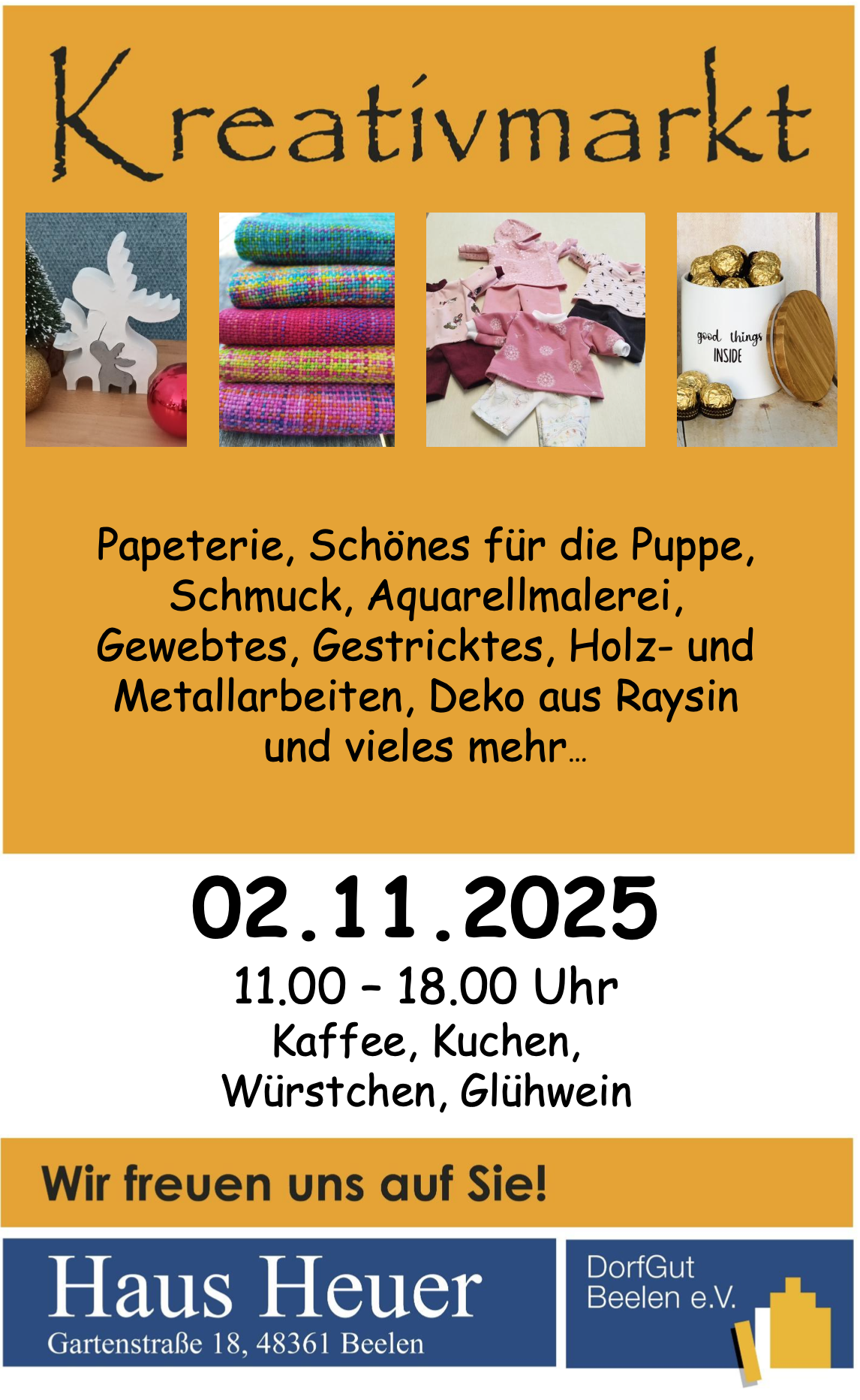 Kreativmarkt am 2. November im Haus Heuer in Beelen