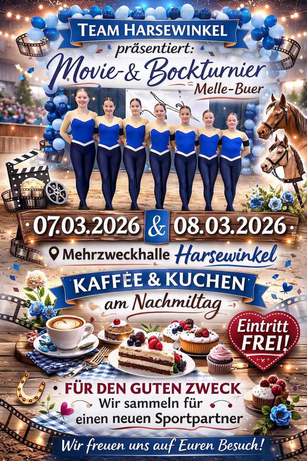 Harsewinkel. Unter dem Motto „Movie & Bockturnier“ lädt das Team Harsewinkel am 7. und 8. März 2026 zu einem besonderen Turnierwochenende in die Mehrzweckhalle Harsewinkel ein. Sportliche Höchstleistungen, ein kreatives Showprogramm und geselliges Beisammensein versprechen zwei abwechslungsreiche Tage für die ganze Familie.
