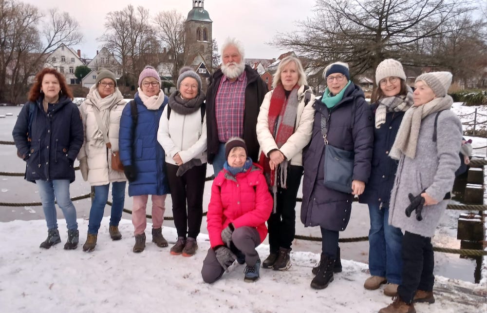 Die erste Wanderung im Jahr 2026 hat bereits am Sonntag, 05. Januar stattgefunden. Bei schönstem Winterwetter ging es in Wiedenbrück auf der ca. 8,5 km langen Ems-Wall-Promenade Richtung Stadtwald und durch die historische Altstadt. Zwölf Teilnehmer freuten sich anschließend auf das reichhaltige Kuchenbuffet im Seecafé am Emssee.